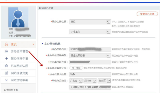 第二步:正確填寫(xiě)開(kāi)辦主體信息,系統(tǒng)會(huì)自動(dòng)推送您的網(wǎng)站到網(wǎng)站認(rèn)領(lǐng)菜單下。