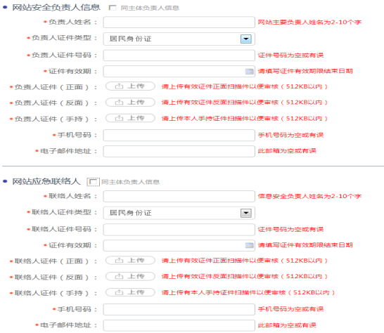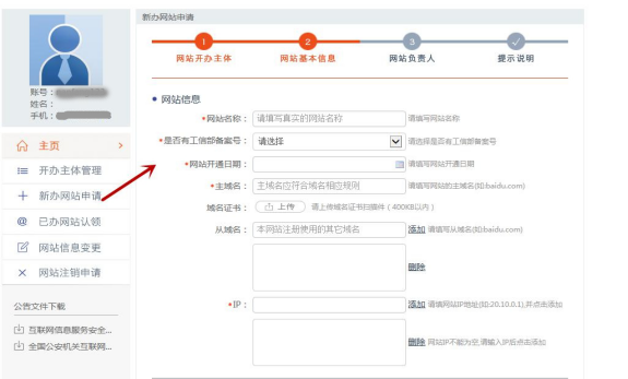 第三步:網(wǎng)站負(fù)責(zé)人信息填寫(xiě)