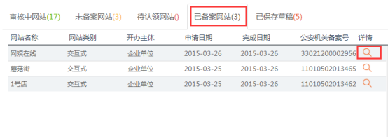第三步:點(diǎn)擊 按鈕,對(duì)網(wǎng)站信息備案信息進(jìn)行修改完善,提交后,等待民警審核結(jié)果。