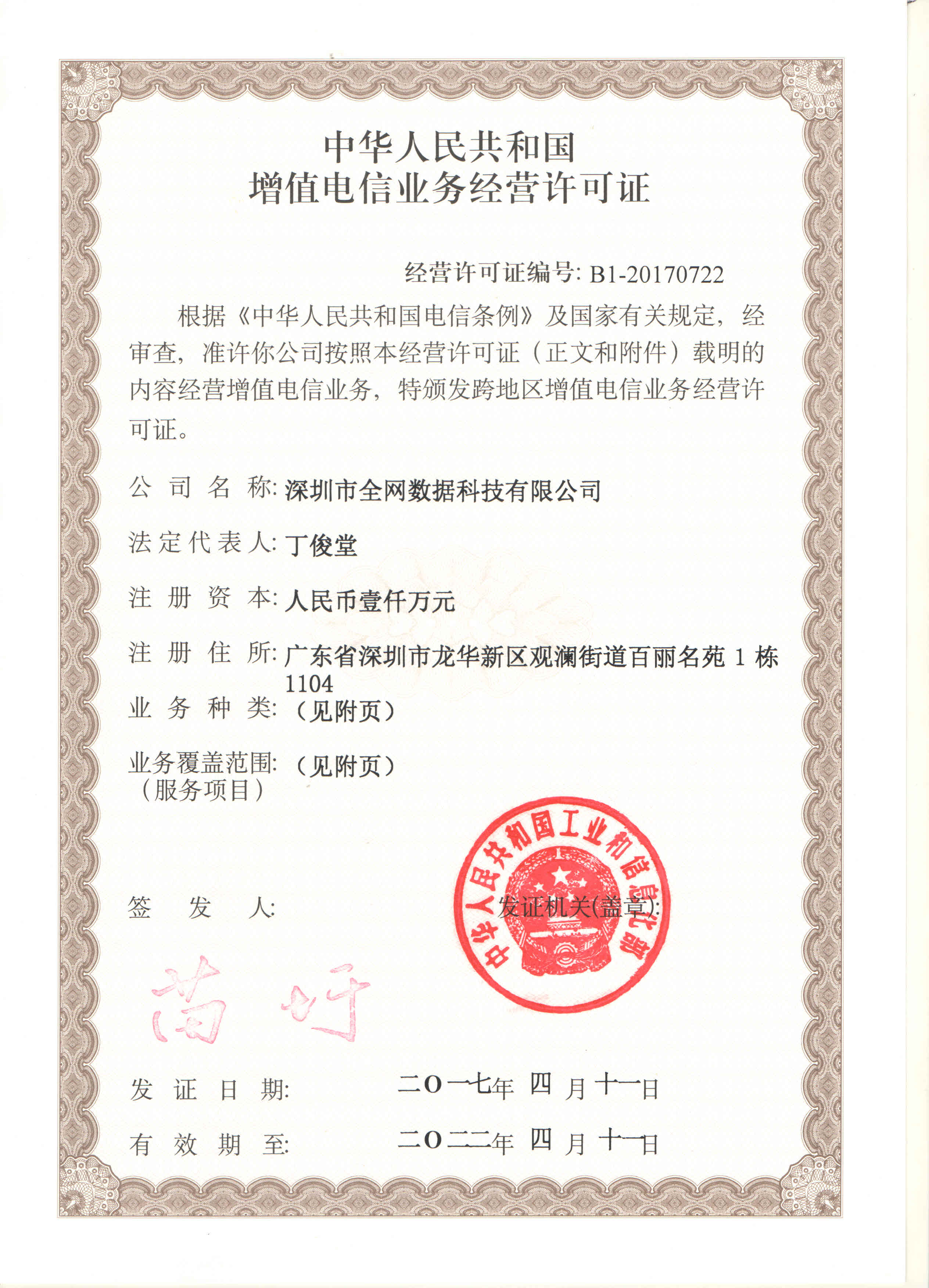 輸入(tsm.miit.gov.cn )輸入“深圳市全網數據科技有限公司”即可驗證