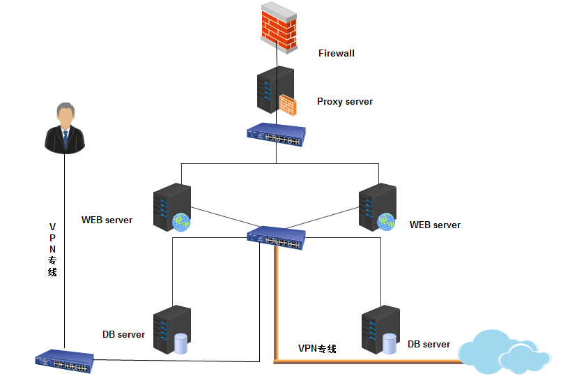 6、異地數據容災,將機密數據通過加密VPN通道備份到異地機房,使系統即使是災難性毀滅也能業務不中斷。