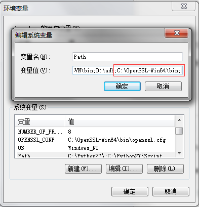2.2 設置環境變量,例如工具安裝在C:\OpenSSL-Win64,則將C:\OpenSSL-Win64\bin;復制到Path中