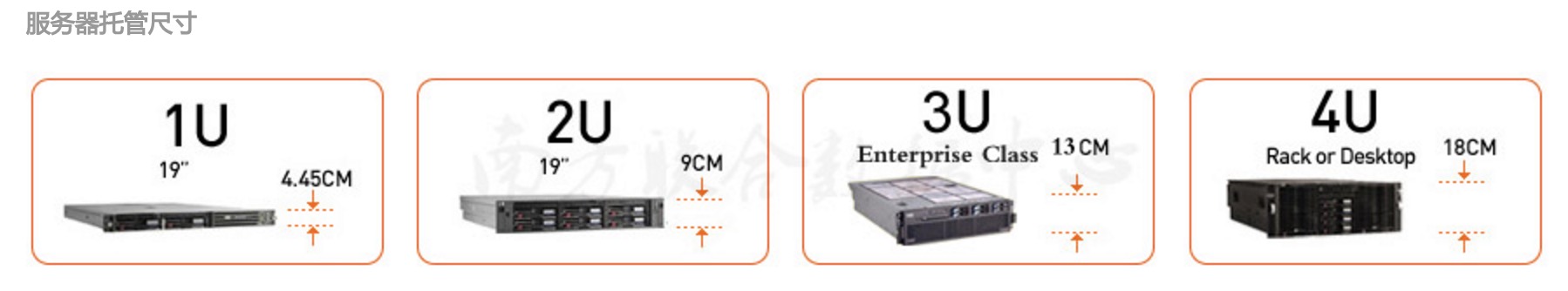 服務器的U=服務器的高度尺寸,目前市場上常用的服務器U如上圖所示。